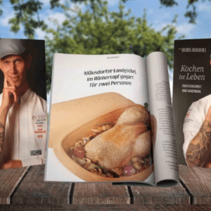 13.12.2018 Der Mäusdorfer Bio-Landgockel ist nicht nur in privaten Haushalten begehrt, auch die Sterneküche hat ihn schon lange entdeckt. Aktuell ist er im neuen Kochbuch „Kochen ist Leben“ von 2 – Sternekoch Boris…