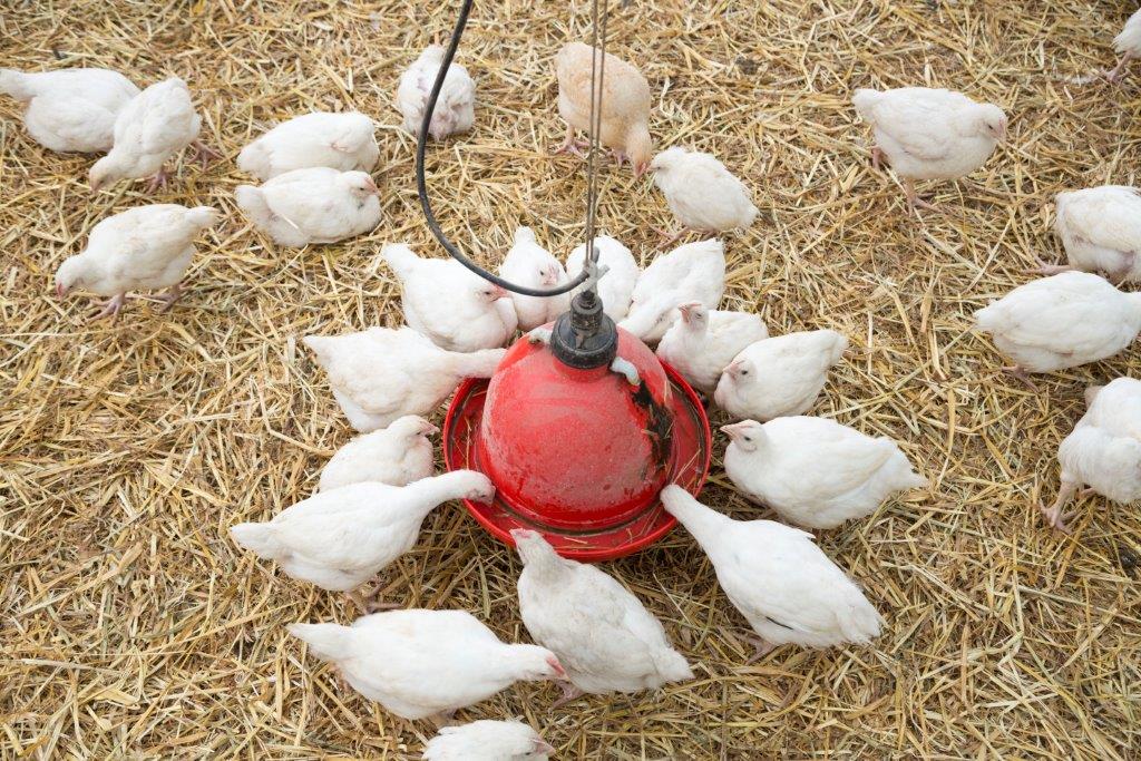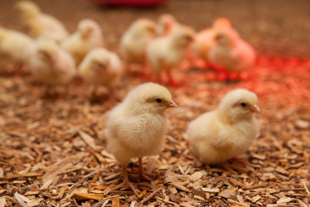 Schon zu Beginn wurde ein Konzept für die Aufzucht von Landgockelküken erstellt, welche aus Öko-Elterntierhaltung im Alter von einem Tag auf den Brunnenhof kommen. Mit täglichen Kontrollen und sorgsamer Pflege werden die Küken bis zu vier Wochen in einem geschützten Aufzuchtstall betreut. Der Aufzurchtsring sorgt dafür, dass die Küken ein abgestecktes Areal zur Verfügung haben, in dem sie sich barrierefrei bewegen können, so entstehen keine Engpässe. Die Aufzucht findet in einem so genannten Aufzuchtsring statt und jedes Küken kann selbst wählen, ob es sich unter dem Wärmestrahler oder lieber im kühleren Randbreich aufhalten möchte. Diese unterschiedlichen Temperaturzonen sind wichtig, um den Kreislauf der Tiere anzuregen.